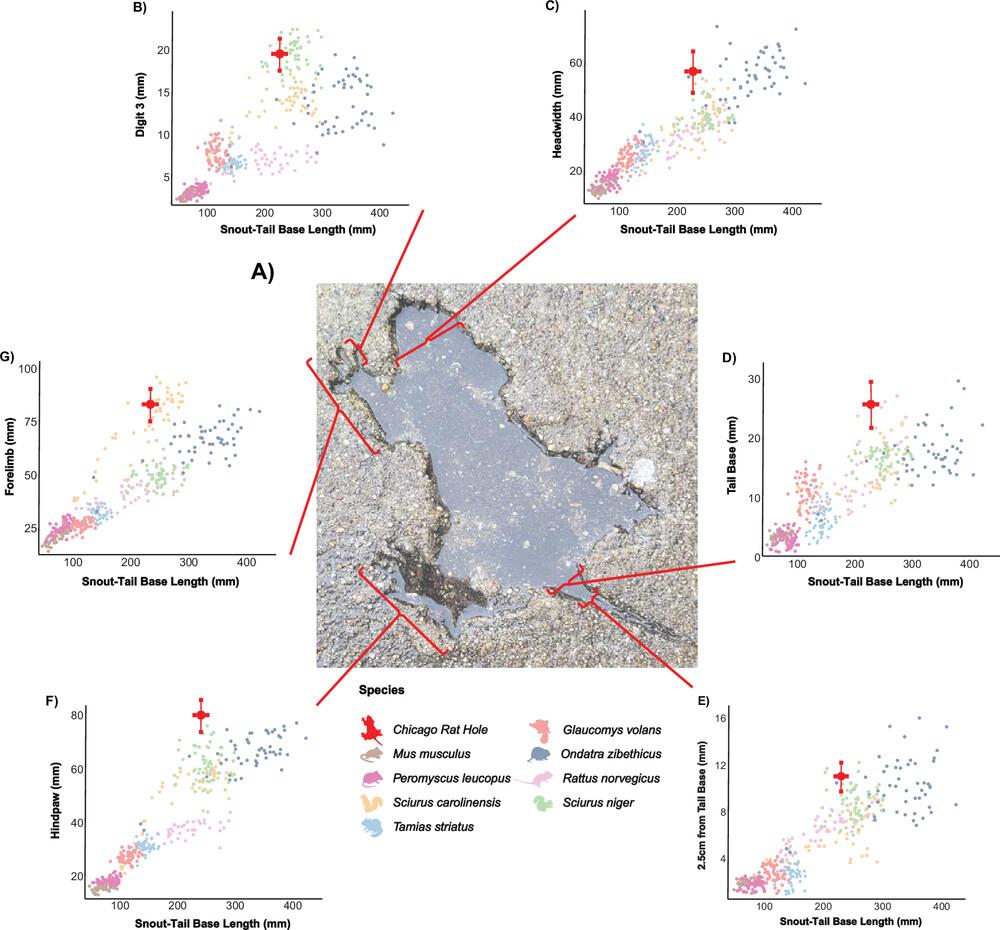 Granatosky and his team compiled several photos of the rat hole from social media and news reports. They used the coins left at the rat hole as scale bars to calculate measurements of the animal. They also studied the most common species in the area and measured mammal specimens in museum collections.